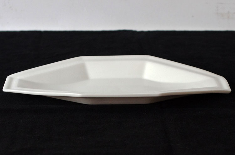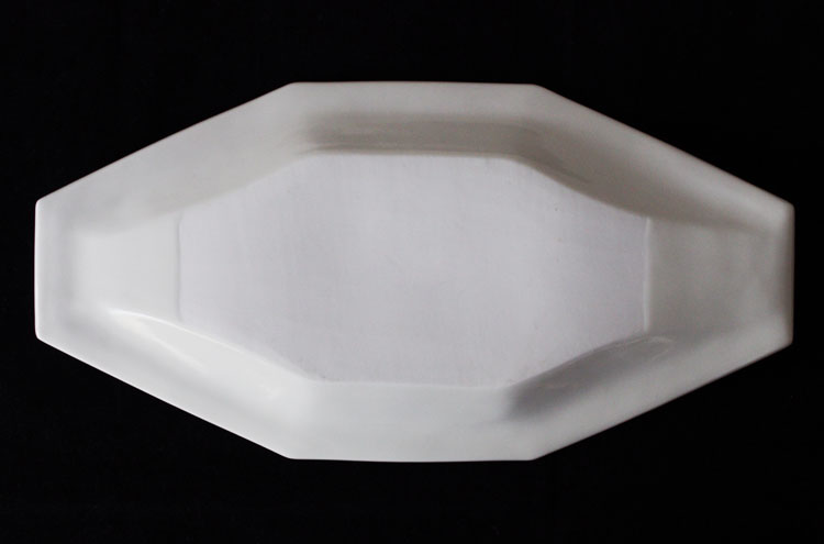 真っ白な磁土を用いた作品ですが、他メーカーの磁器と同様に黒点(除去しきれない鉄粉)が部分的に見られる場合がございます。不純物の完全な除去が難しい材料の仕様となりますので、事前にご了承くださいませ。※参考写真は「七宝繋ぎオクトゴナルオーバルプレート」の画像です。