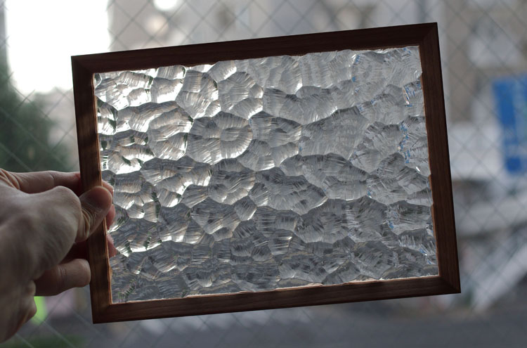 ※ガラスのカットの位置による模様の違いや、木材の色合い、木目や杢(モク)の模様や位置は、自然素材のため、作品ごとに異なります。これらを理由とした交換や返品などのご要望は、受け付けることは出来かねますので、何卒ご了承下さいませ。