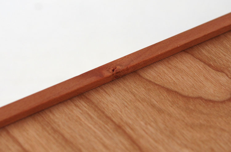 「a」は日本人に馴染み深い、ほんのり赤い桜色が印象的な「チェリー材」を使用した木蓋。