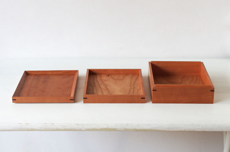 重箱タイプの本体は、重ねた際にも木目が揃うように見た目を意識して木材をカットし、組み上げられてます。