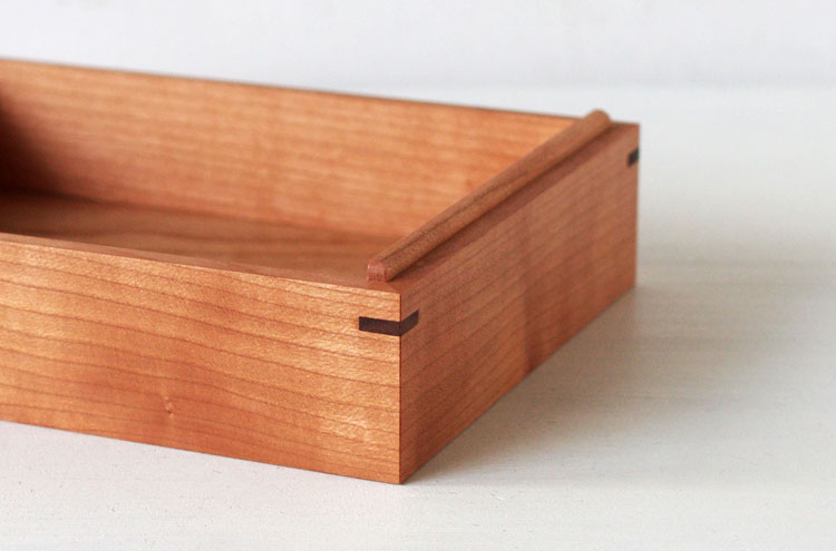 箱の角の補強(継ぎ)に異なる樹種が使われているものもあり、コントラストを楽しめます。