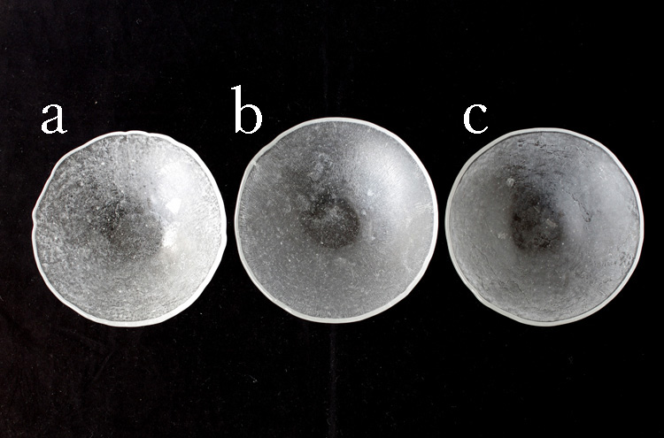 石膏型(鋳造)や、耐火セメント型(スランピング)による成形のため、生産効率の優れた吹きガラスと比べて、手間のかかる工法にて、1点ずつ丁寧に仕上げられてます。