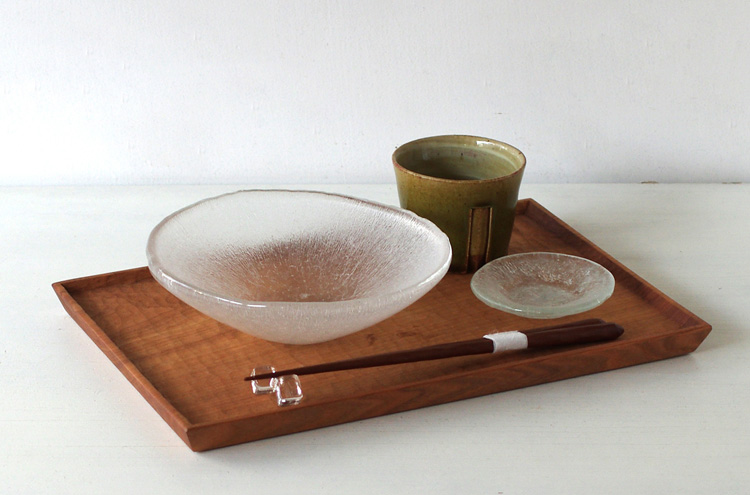 霞みがかったような表情が印象的なガラス。不思議と暖かみのある素材感と色合いが、季節を選ばずに、オールシーズン使いたくなる作品です。
