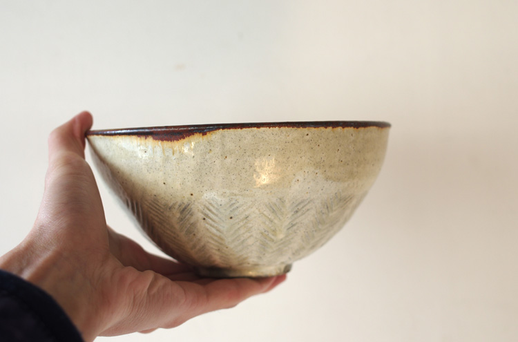 彫り粉引きシリーズは、江口誠基さんの作品で、丁寧に彫刻された上に、粉引を纏った、荒々しくも上品な、侘びた印象のある、独創的な美しさを醸し出す人気のシリーズ。