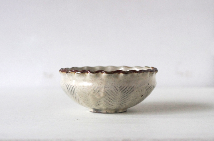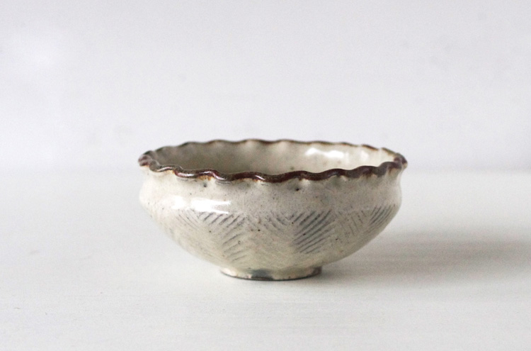 羅以音窯 / 彫り粉引き / 波縁小鉢