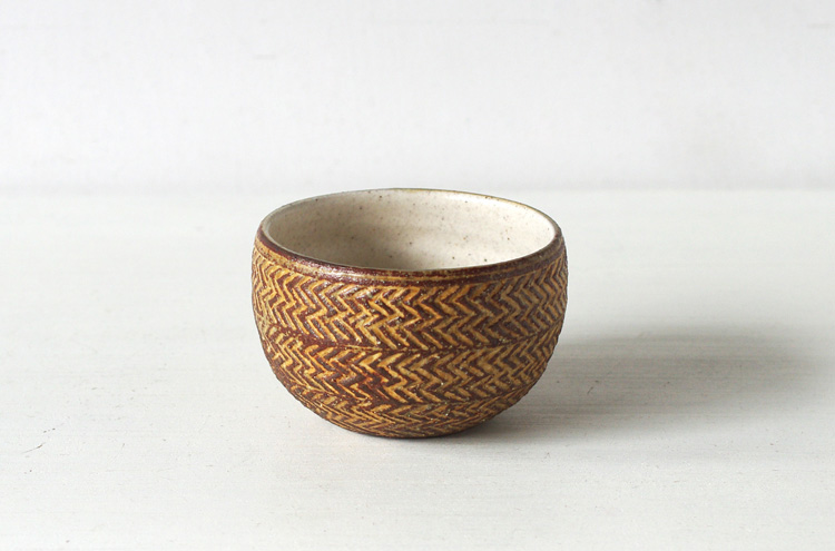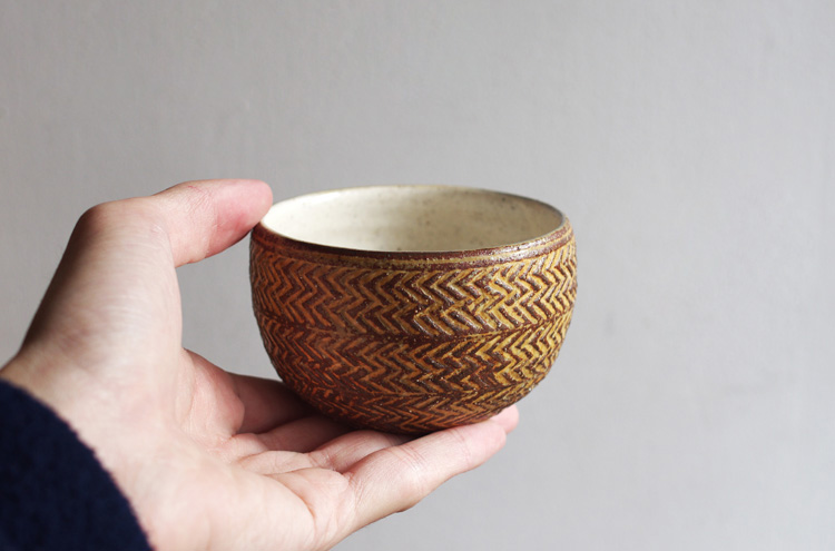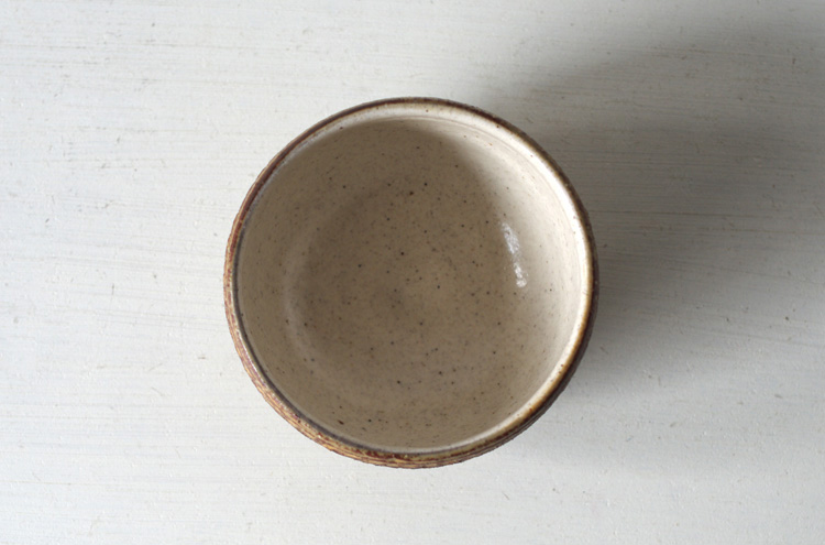 外側が伊羅保釉で内側が粉引の釉薬の掛け分けで仕上げられた湯呑(小)。