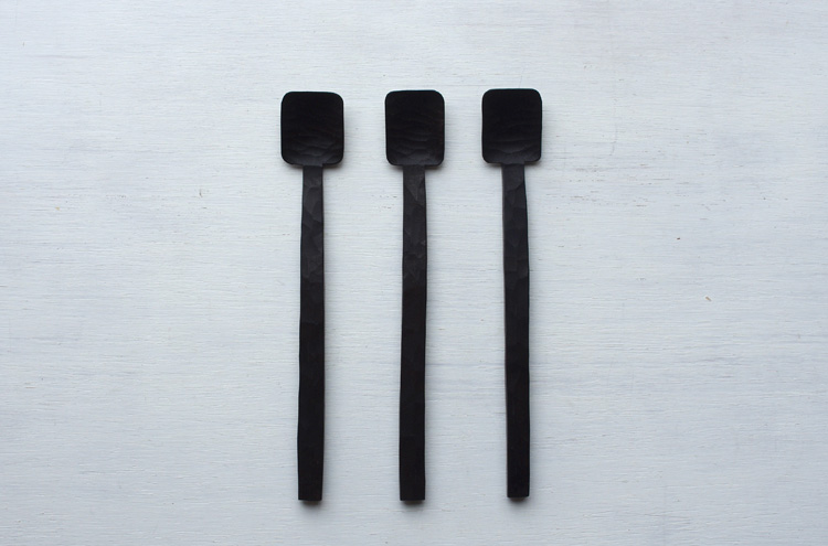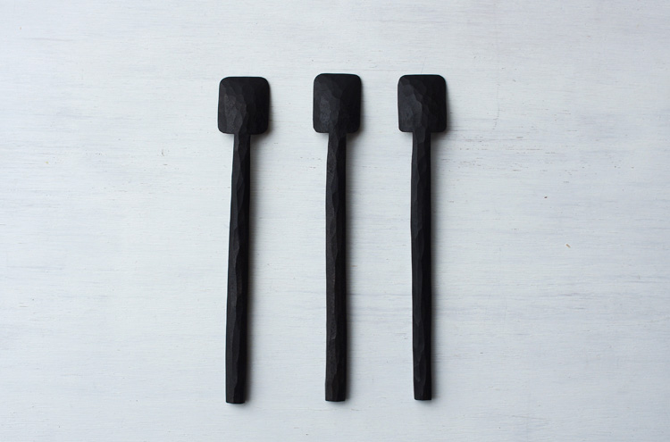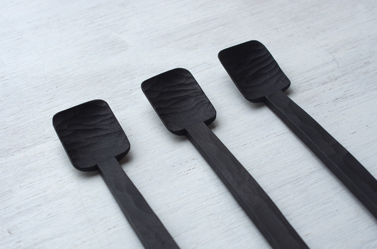 草木染(鉄媒染)を施した、新作のジャムスプーン。