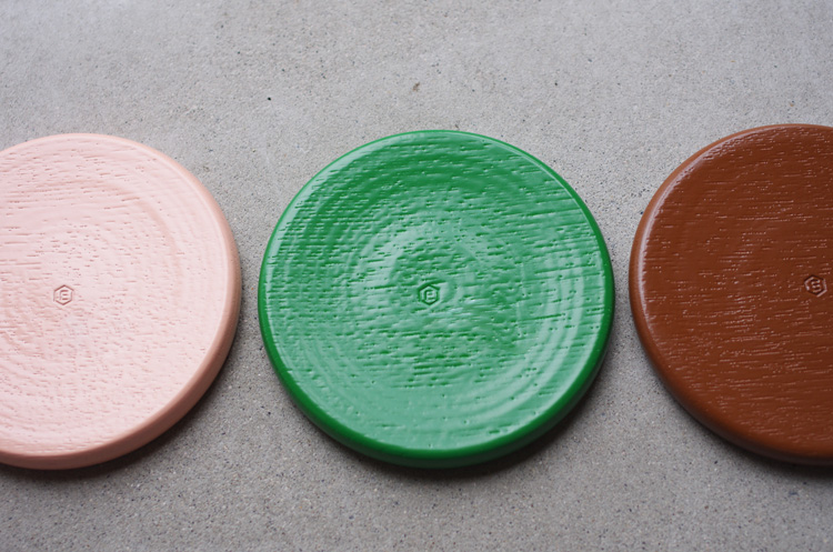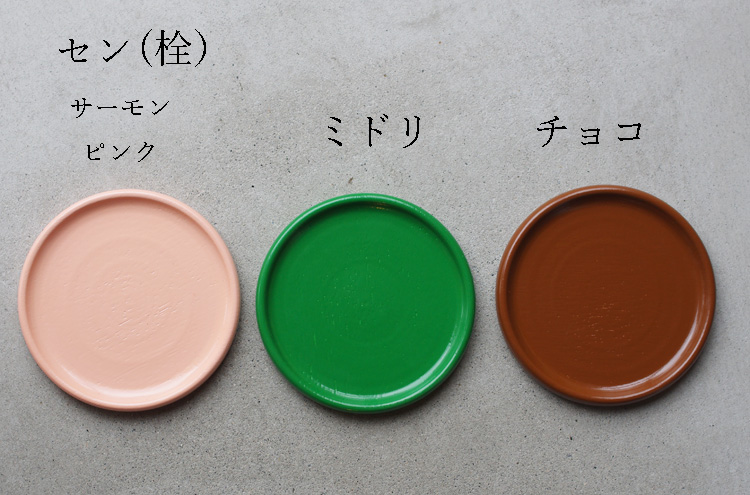 サーモンピンク、ミドリ、チョコの3色は、セン(栓)を使い、ひとつひとつ丁寧に制作されています。