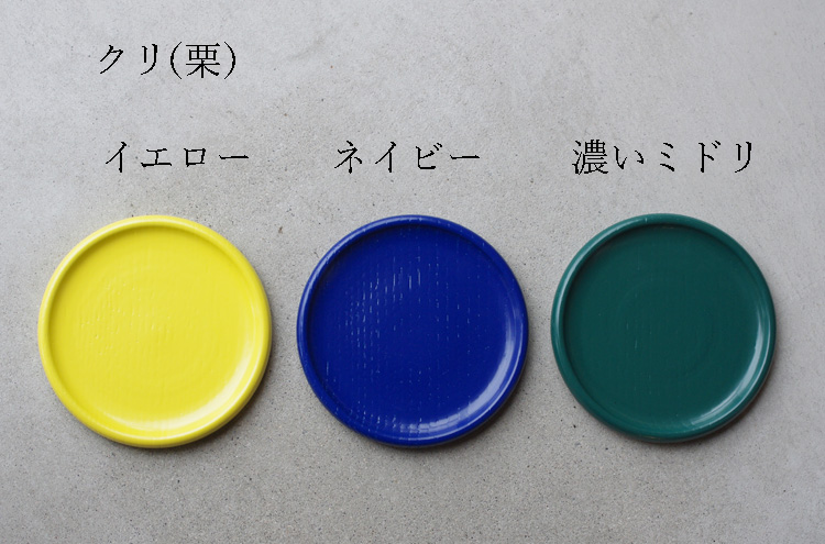 イエロー、ネイビー、濃いミドリは、クリ(栗)に塗装が施されています。