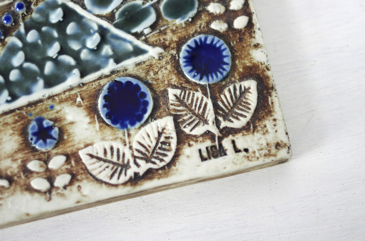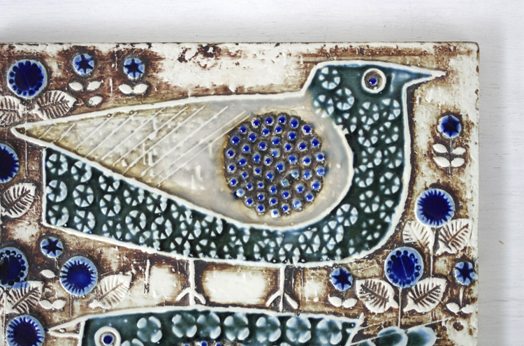 二羽の鳥とお花畑の世界観が、素朴さと可愛らしさを兼ね備えた陶板。スウェーデンの貴重なアート作品をぜひお楽しみください。