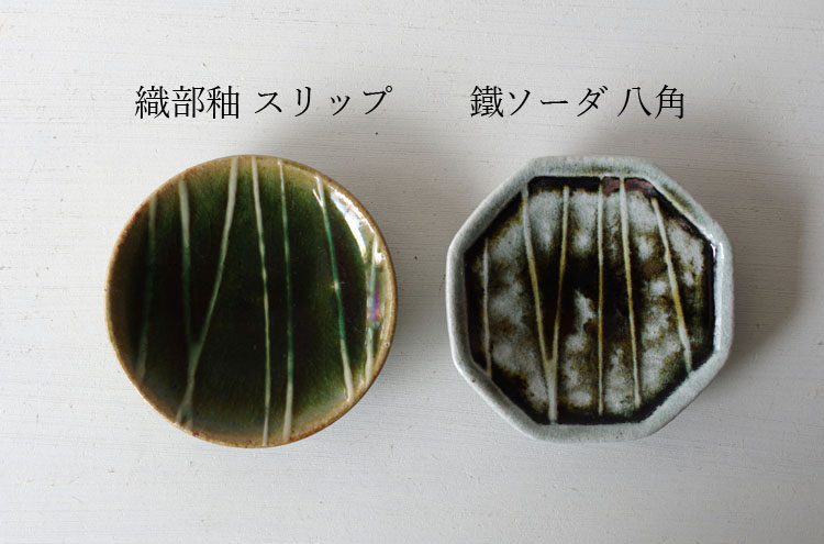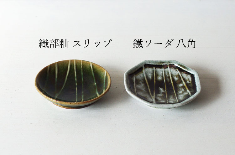打鋲、鎬、刷毛目等のそれぞれの作品に施された丁寧な装飾が、釉薬やソーダの反応を際立たせる美しい豆皿。