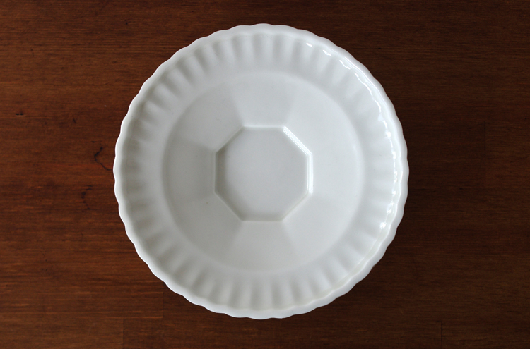 真っ白な磁土を用いた作品ですが、他メーカーの磁器と同様に黒点(除去しきれない鉄粉)が部分的に見られる場合がございます。不純物の完全な除去が難しい材料の仕様となりますので、事前にご了承くださいませ。※参考写真は「七宝繋ぎオクトゴナルオーバルプレート」の画像です。