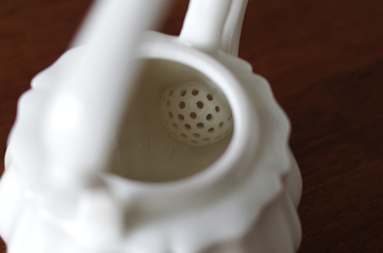 内側(注ぎ口の根本)の茶こしも釉薬が掛けてあり、ツルッとして汚れがつきにくい仕様です。