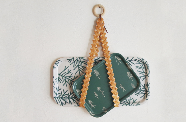 質の高いフィンランドの白樺樹皮を素材に、ハンドメイドで丁寧に製作されているトレイハンガー。